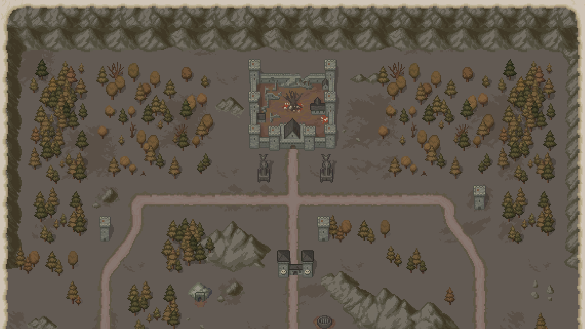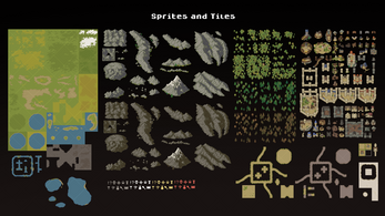 - 7 Tile maps (Ground, Roads, Water, Mountains, Trees, Objects, Parchment);