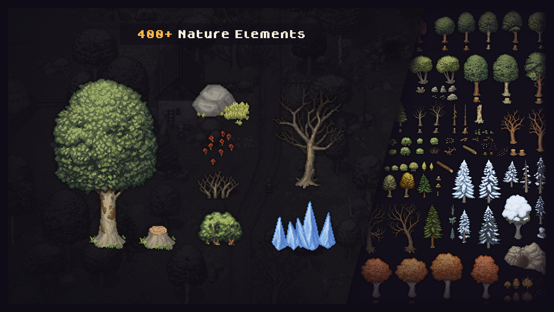 This asset compiles all assets of the Pixel World series and also includes new content. With this asset pack you can create a game in any genre with a top-down view and a 32x32 pixel grid orientation.